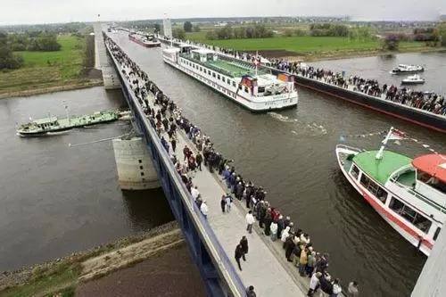大橋不只是提供陸地居民使用,德國船只也利用馬格德堡水橋在易北河和米特爾蘭運河之間通行。此橋用6年時間建造完成,耗資5億歐元,于2003年開放。