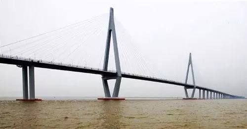 我國東海大橋于2005年5月建成,起始于上海南匯區蘆潮港,北與滬蘆高速公路相連,南跨杭州灣北部海域,直達浙江嵊泗縣小洋山島,全長32.5公里,是世界上最長的跨海大橋之一。